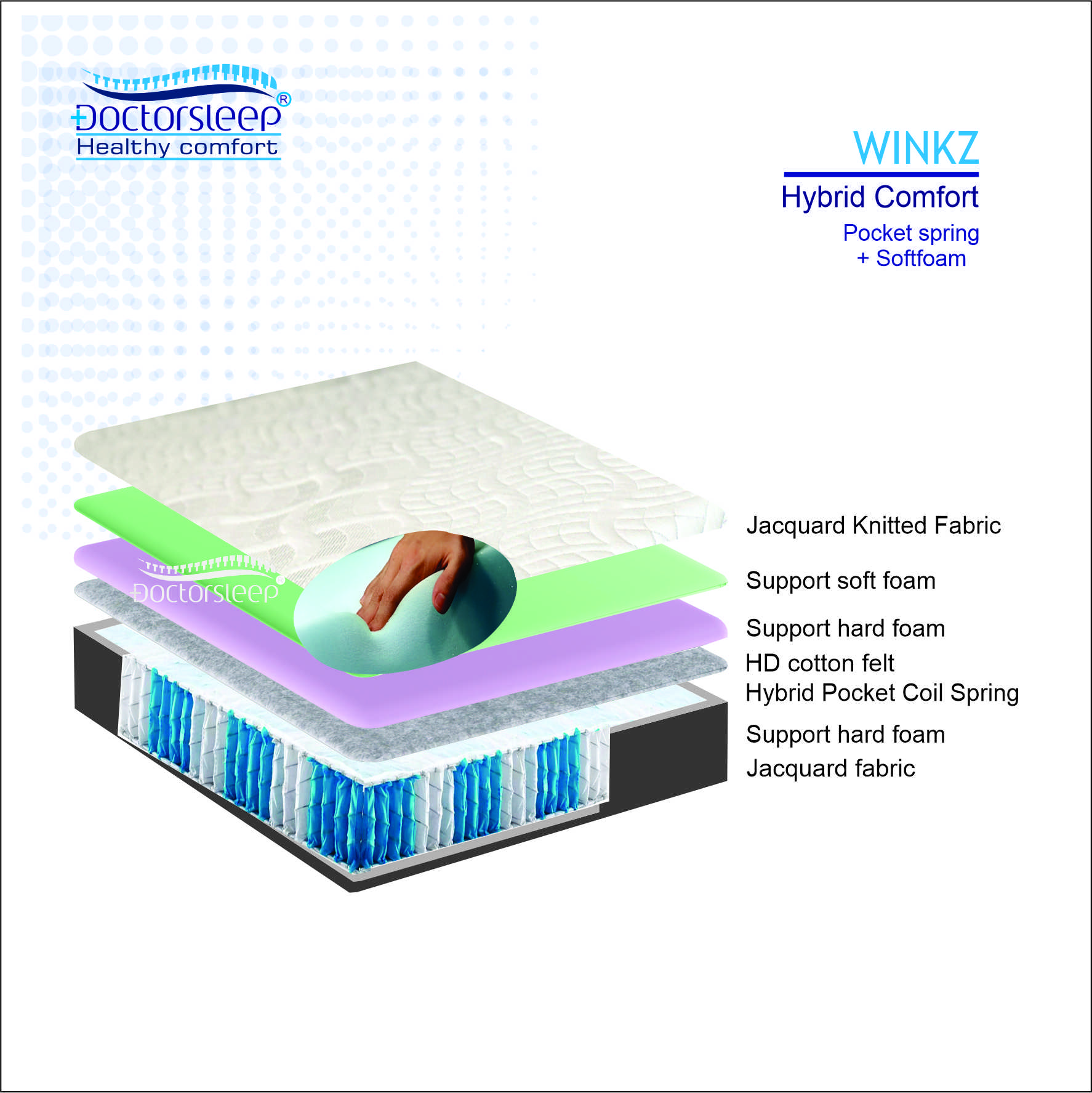 Featuring independent pocket springs with HD foam and soft foam, this mattress delivers controlled firmness and targeted support for the waist and back. Zoned reinforcement promotes proper spinal alignment, while the quiet spring system reduces motion transfer for a calm, continuous sleep.